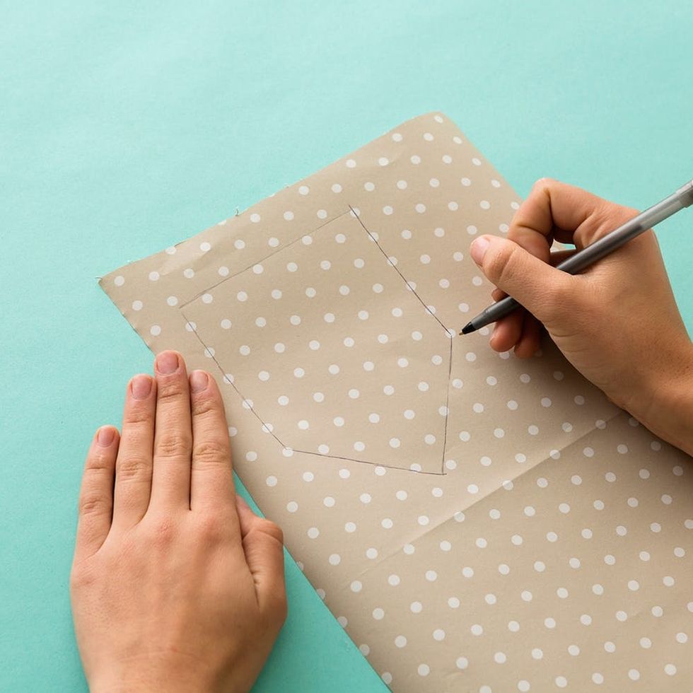 Create a template for a pentagon shape that measures about four inches in height. Cut out as many as you’ll need for your desired phrase.