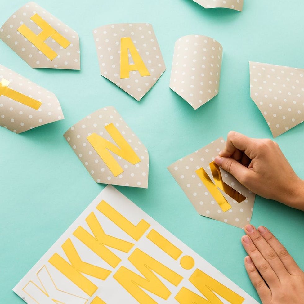 Felt banners are great but kinda costly. Luckily, you can get the same cute look with paper, streamers, and letter stickers. This banner is so adorable you might just want to keep it around and incorporate it into your gallery wall.
