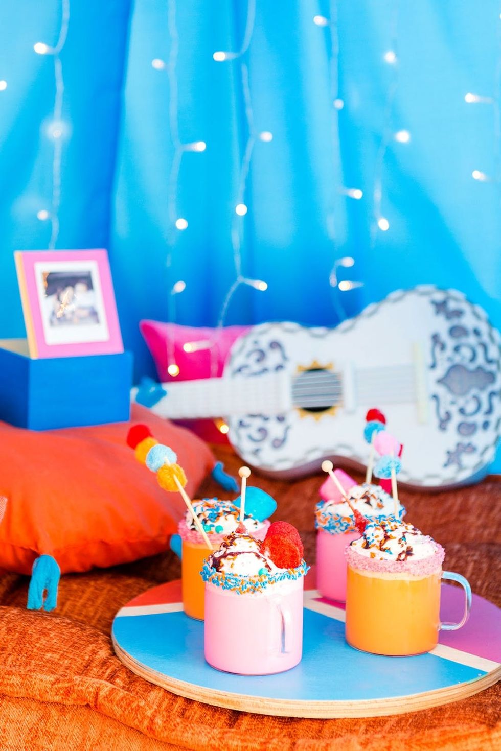 Make your family's movie night extra magical by starting a new tradition of movie-night hot cocoa bars. To go with the theme of the movie we plan on watching, we created a colorful hot “Coco" bar… see what we did there ;).