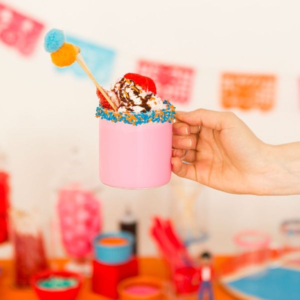 To make these sprinkle mugs, melt white chocolate in the microwave and dip the tops of the mugs. Next dip the chocolate covered mugs in sprinkles. Give them some time to cool off and dry before serving.