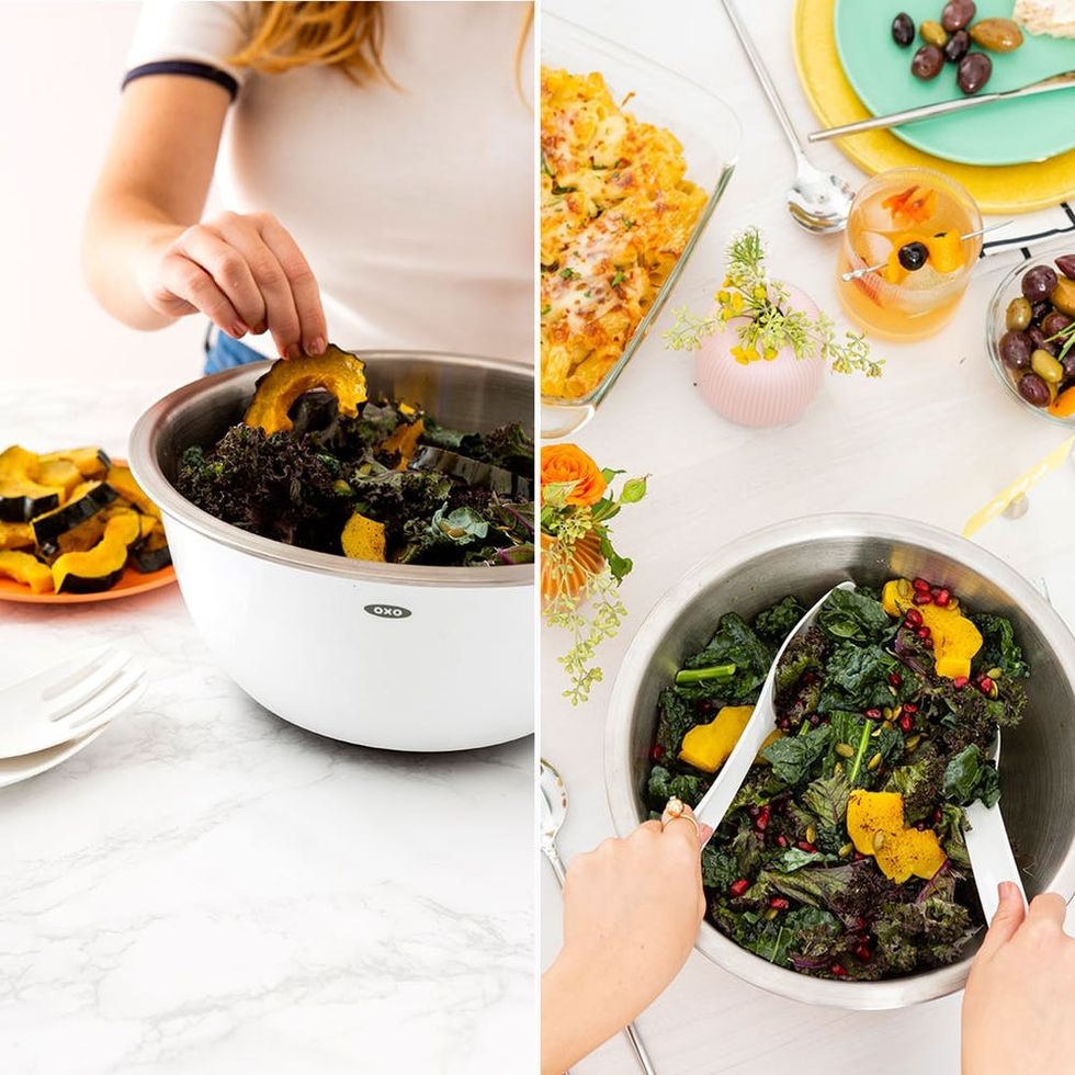 Consider investing in a few pieces that will do the job in the kitchen and elevate your tablescape, like this OXO 3 Piece Stainless Steel Mixing Bowl Set or a beautiful casserole dish.