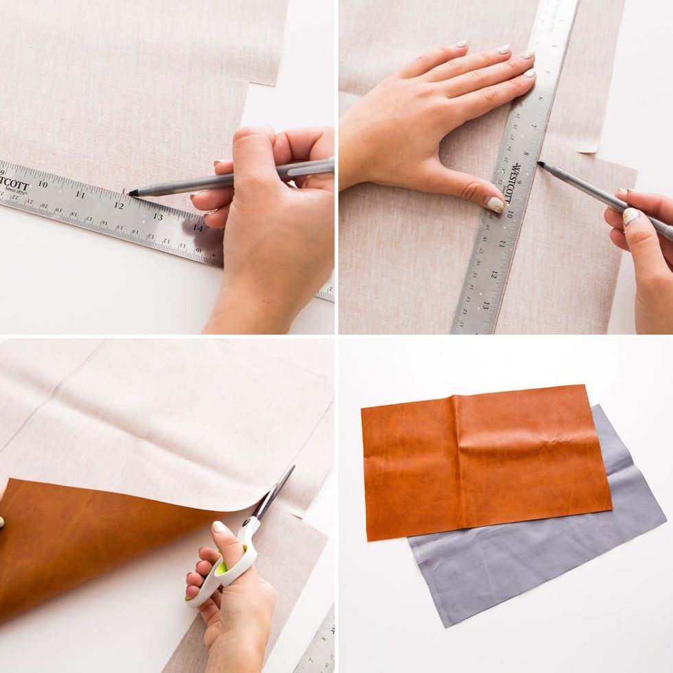 1. Cut out a 12 x 20 inch rectangle from your leather and another (same measurements) from your canvas.