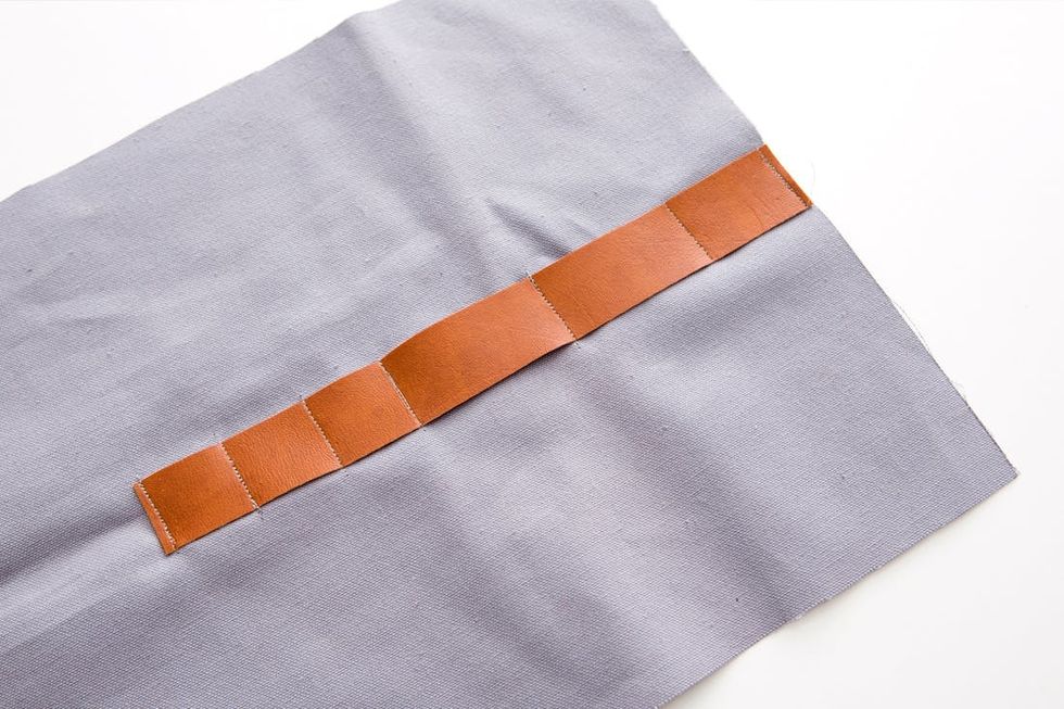 Cut out two rectangles, one from canvas and one from leather. Each rectangle should measure 12 x 20 inches.