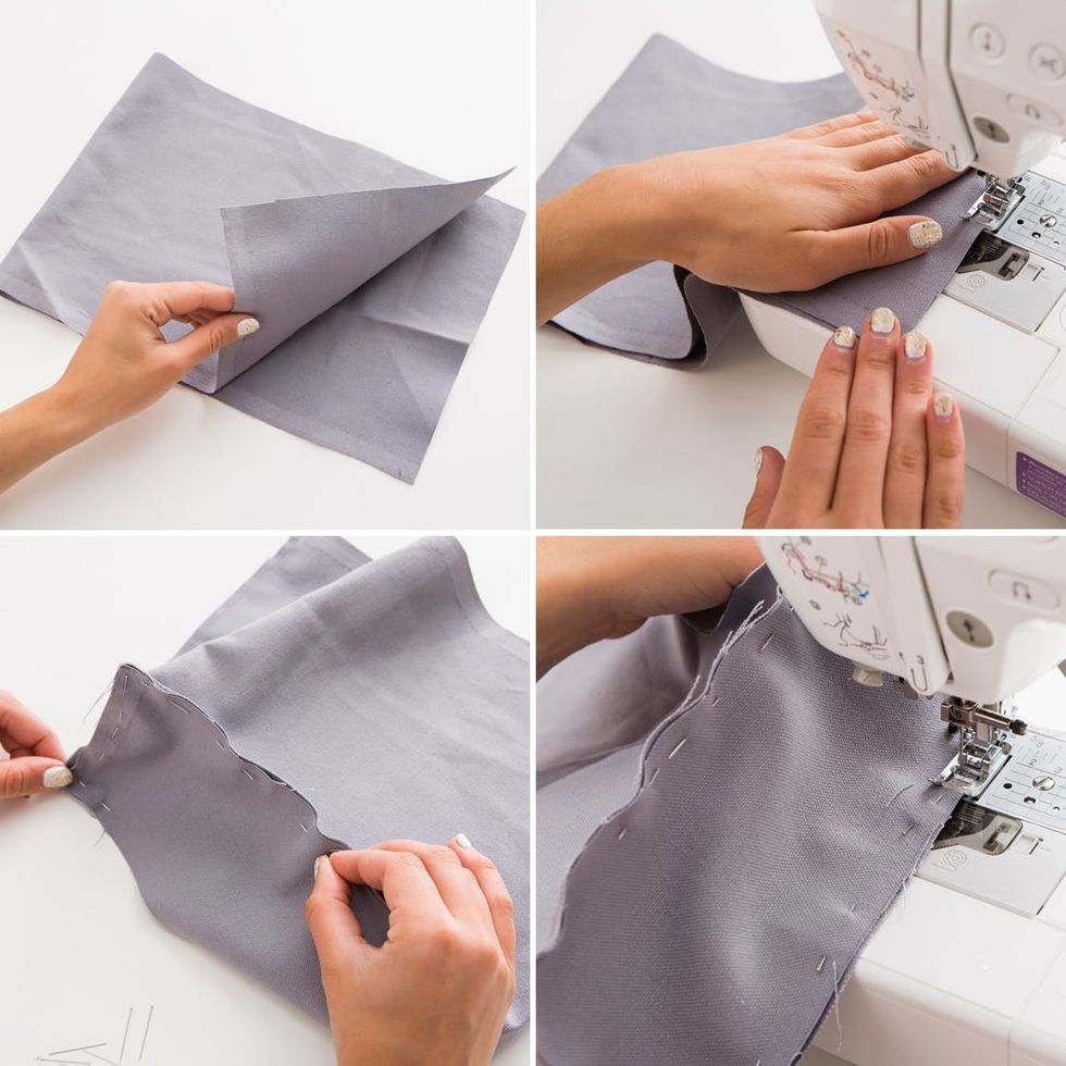 9. Fold and pin the top of the bag over to create about a half inch hem, then sew.