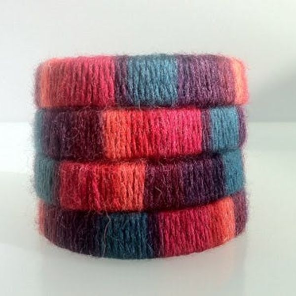 Repeat for as many cuffs as you like and you’ve got some cozy bangles perfect for ski lodge style.