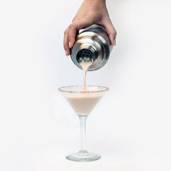 Pour your drink into the martini glass. Put your pinky up and cheers to pumpkin!