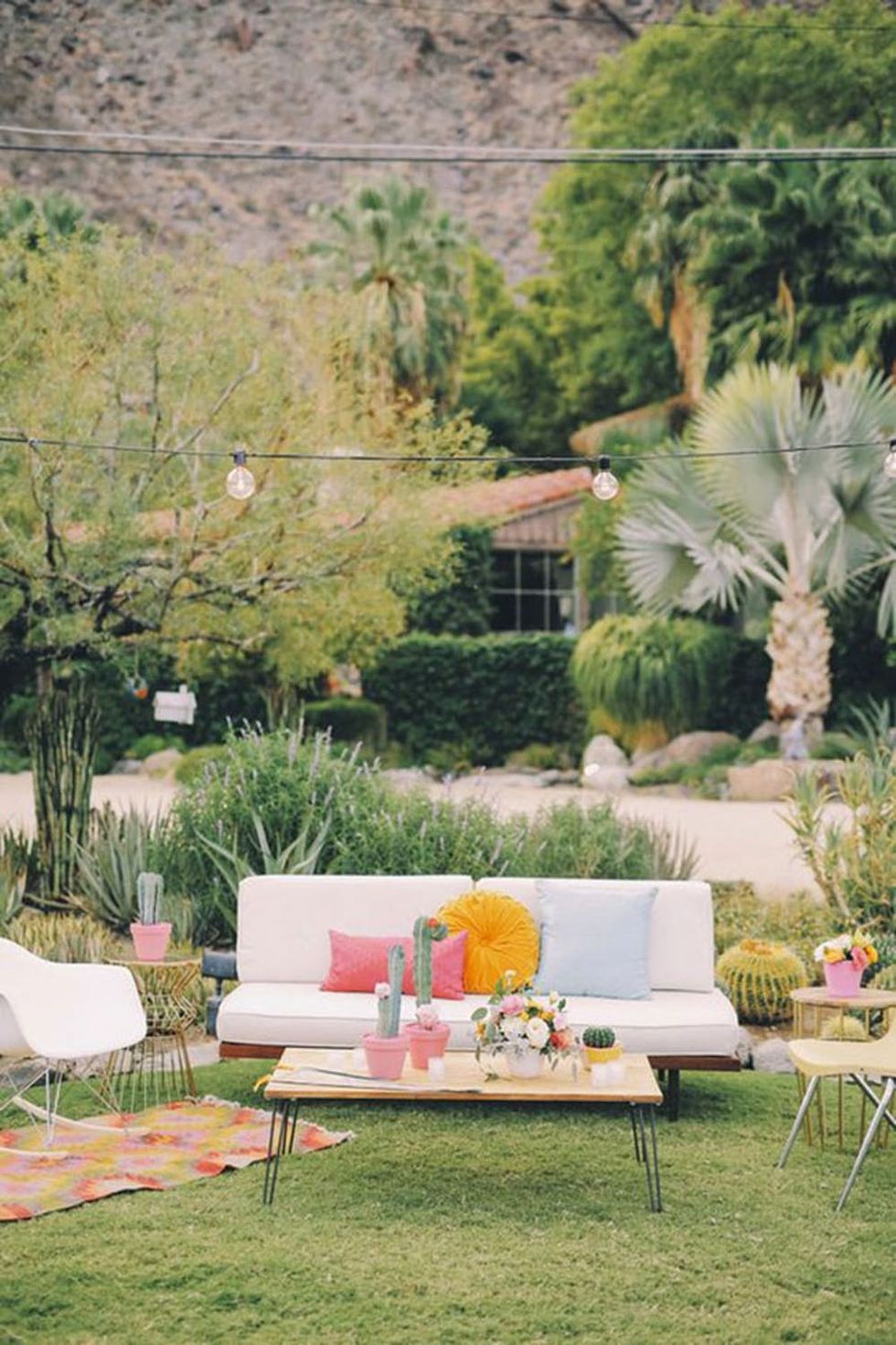 7. Outdoor Garden Lounges: You’ve got to take the indoors out if you’re going for that PS style. If you have a nice garden area like this for the reception, spice it up with some colorful decor and layered rugs. (via Gideon Photography)