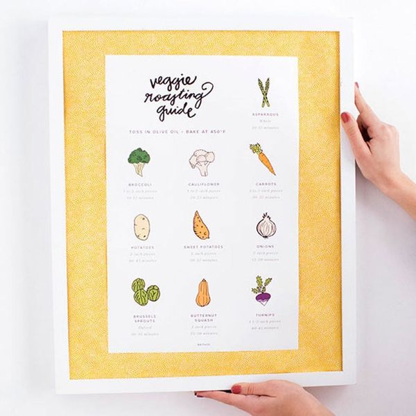 Inspired by a chart from our book Homemakers, this guide to roasting veggies is not only handy but also happens to be printable. With our printable templates, you can create wall art and a tea towel. Follow the easy steps below to see how to turn this guide into two perfect pieces of kitchen decor.
