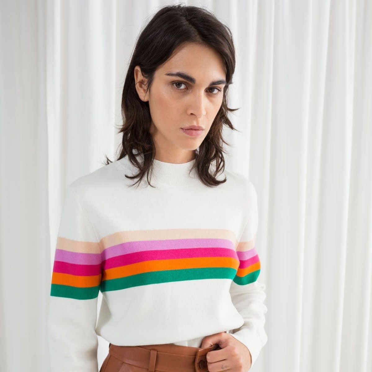 & Other Stories Rainbow Stripe Pullover ($69): Shake up your wardrobe of neutrals with a riot of color.