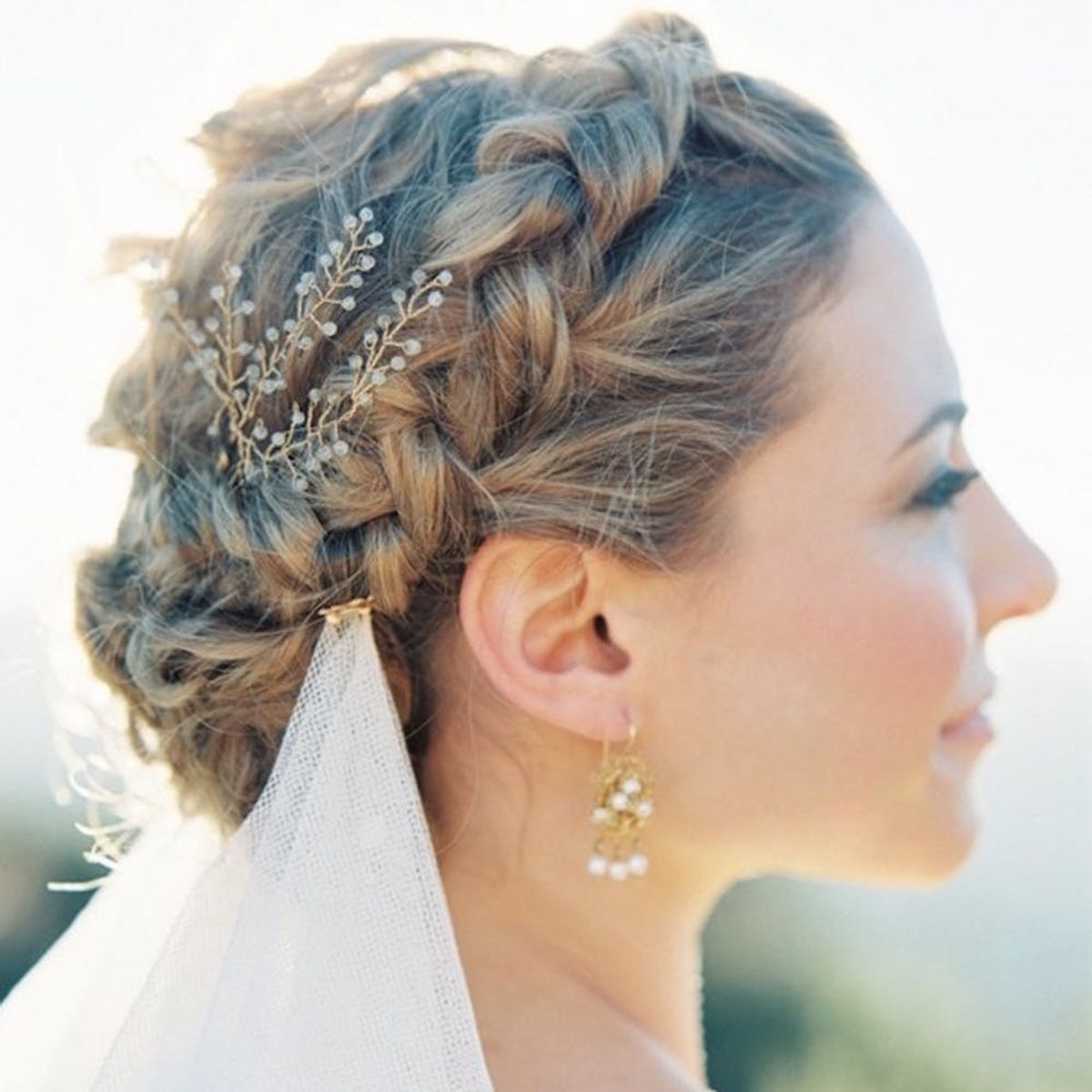 7. Braid: Though it can often be overlooked, a braid-and-veil ‘do will take your look from casual to romantic in seconds. Try a milkmaid braid to get a cool, soft vibe on your wedding day. For a new twist on the milkmaid braid, tie loose knots in your hair until you run out of room and pin down. We promise you will love the results! (Photo via Jen Huang Photography)