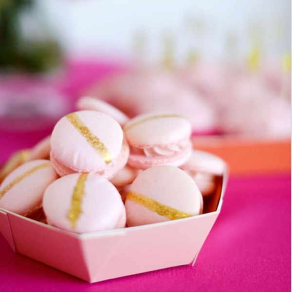 For a dainty dessert, place pale pink macarons on this pretty Meri Meri Toot Sweet Pink Stripe Platter Set ($9, set of three) so guests can grab and go with ease.