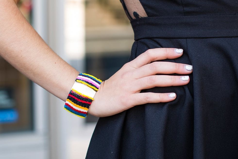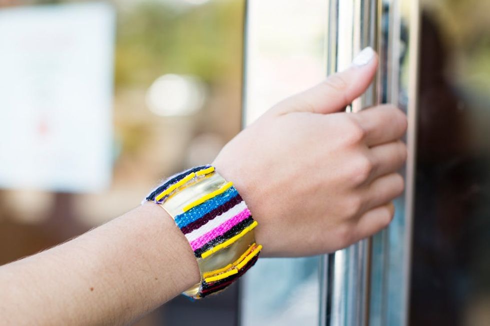 So easy! Choose the most vibrant scraps to add to your bangle.