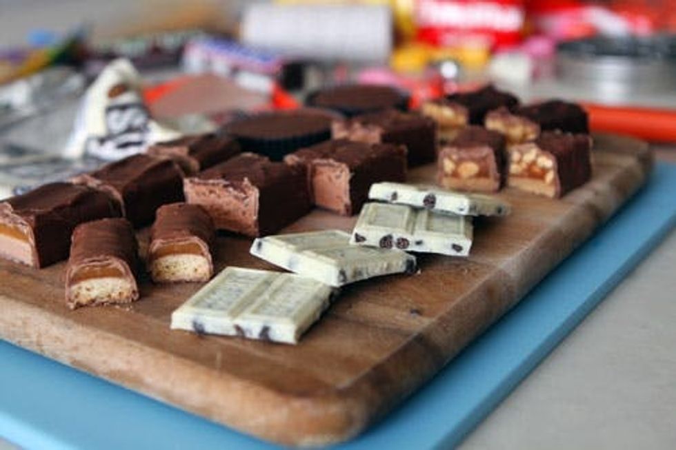 Cut up your chocolate bars into smaller truffle-sized pieces.