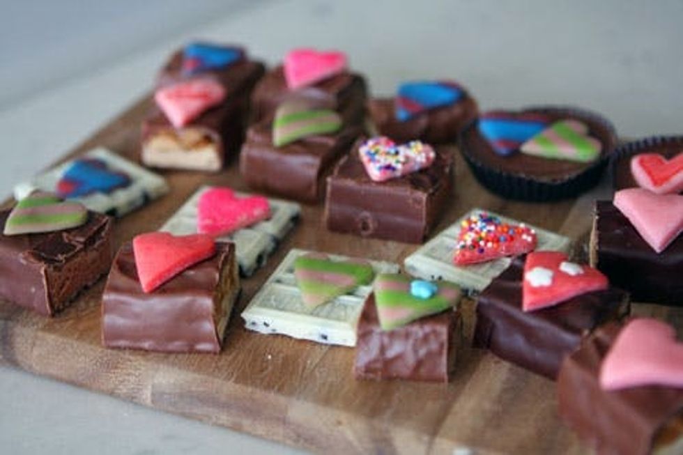 Wait a minute. Are those Snickers, Starburst, and Airheads? Well, Valentine's Day has us experimenting with all kinds of sweetness, and a walk down memory lane via the grocery store candy aisle inspired today's heartwarming hack. The truth is, sometimes good old chocolate bars and fruity candies are simply better than the fancy stuff.