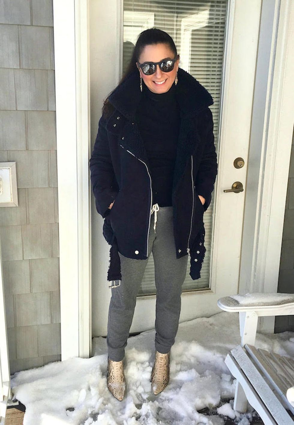 Okay, it may feel slightly counterintuitive to wear ankle booties with sweatpants (and by “slightly” I mean “totally”). But I’ve seen heels and comfy pants more than enough times on the ‘Gram to know it can work — so I just went for it. The key here was balance. Paired with a knit turtleneck from Zara and snake-print booties from Lulu’s, my sweatpants looked semi-ridiculous. But once I added my J.O.A. faux moto shearling and some sunglasses, I felt like everything made a lot more sense. And actually, I felt a little like J.Lo. The verdict: I’d wear this to run errands but not necessarily anywhere I’d actually have to take the jacket off.