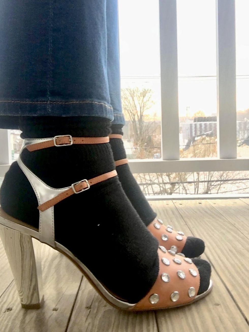 I’ve seen this trick done right more than a few times so I was eager to see if my favorite embellished Banana Republic sandals would work with socks. Truth be told, it was trickier than I thought it would be.