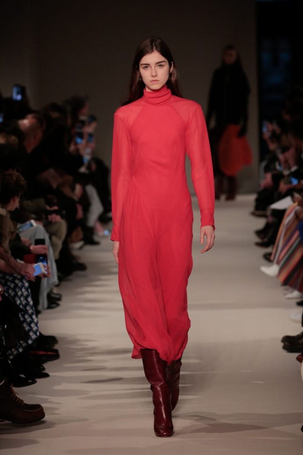Step aside, millennial pink; power red is on the prowl for fall, as seen in this Victoria Beckham look. And if Fendi, Giambattista Valli, Givenchy, and Jil Sander are in, so are we! (Photo via Randy Brooke/WireImage)