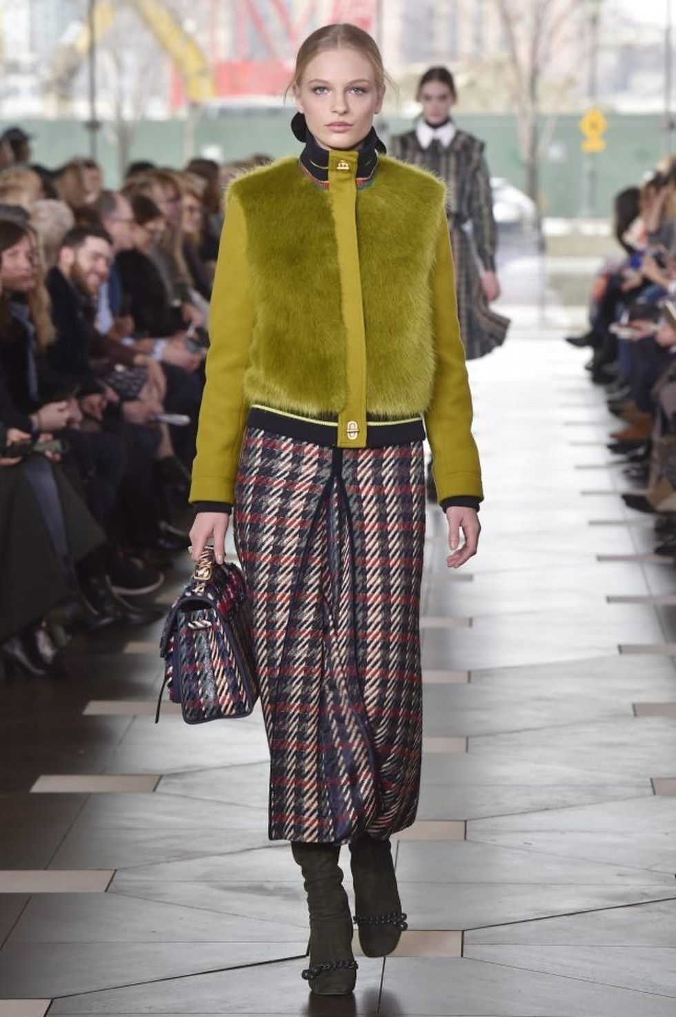 Say sayonara to the ’90s. This season’s plaid prints are laced with sophistication and ’70s panache — just ask Tory Burch (above), Stella McCartney, and Tome. (Photo via Catwalking/Getty)