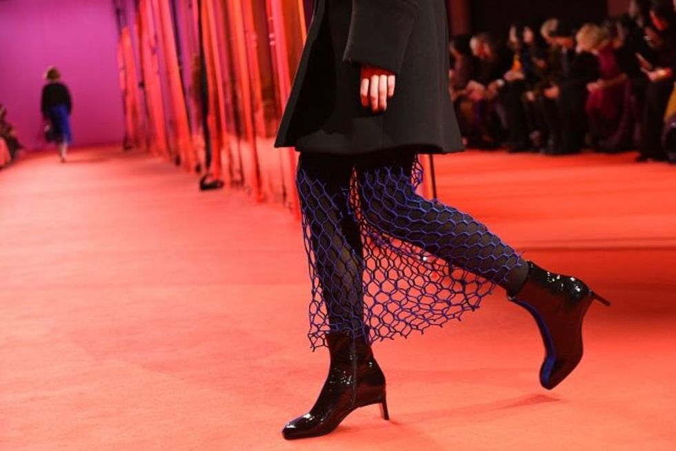 Fishnet socks were a fave trend of fashionable London femmes last year, and the edgy accessory is back again for FW’17. Phillip Lim (above) and Cinq a Sept took the trend to new heights, styling them as a base layer and alongside prim-and-proper blazers. (Photo via Victor Virgile/Gamma-Rapho/Getty)