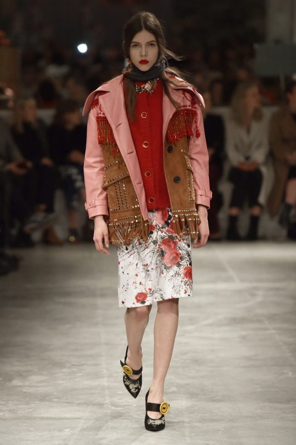 Design houses, including Coach, paid tribute to folksy florals, quilting, and free-spirited fringe. (Photo via Catwalking/Getty)