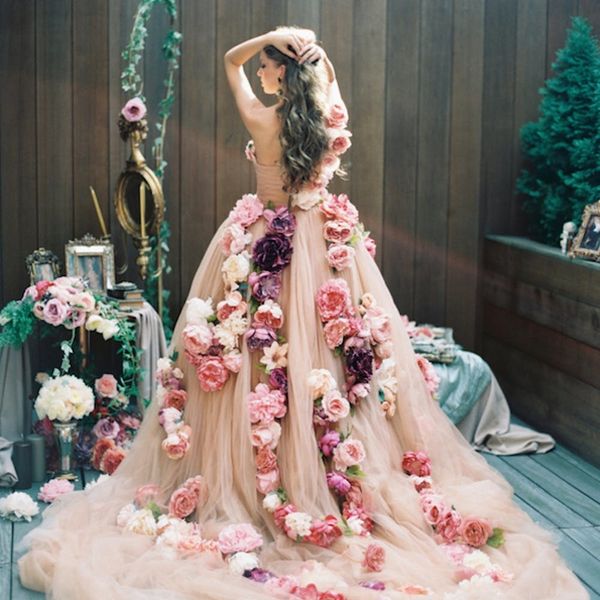 7. A Dress Full of Them: If you are going to go all out, you might as well just sew the flowers INTO your gown. This ethereal dress is like something out of a fairytale. (via Style Me Pretty / Lena Kozhina)