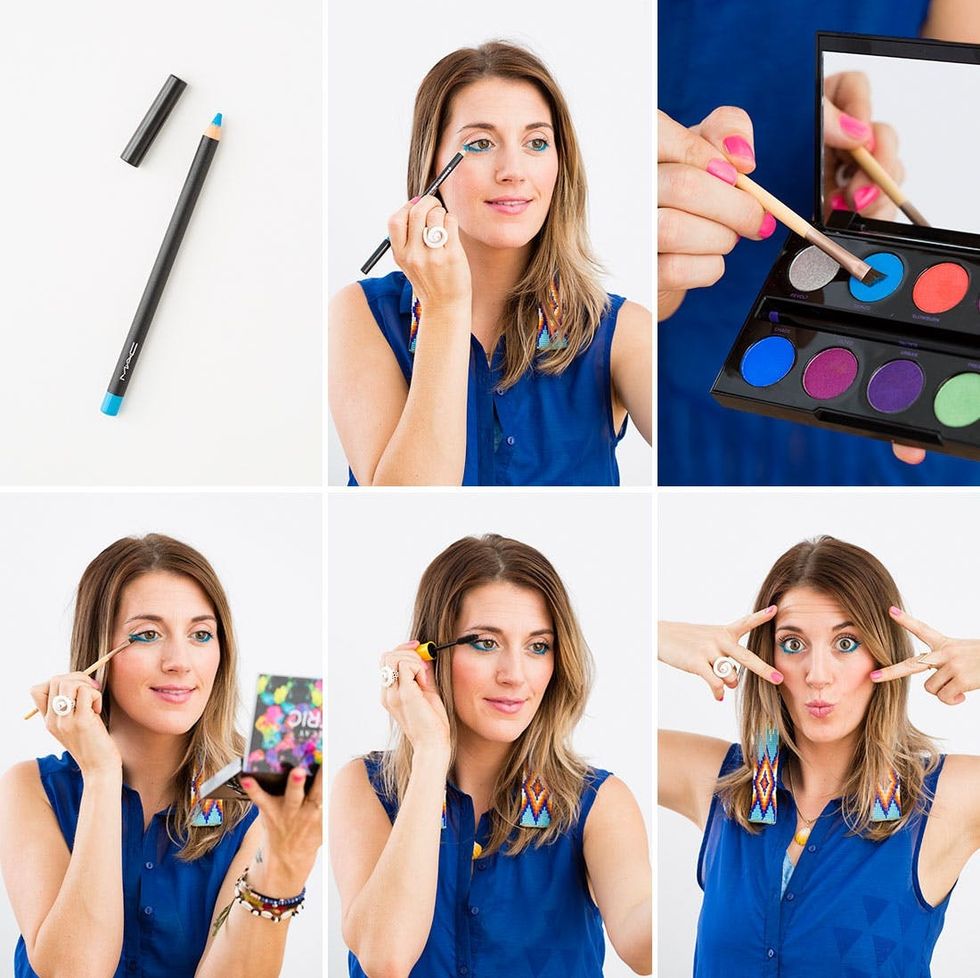 We’re showing you how to create four party-ready looks using neon makeup. And to kick these pigments into an even higher gear, we teamed them up with Chromagraphic colored eyeliner pencils by MAC ($16 each). Together, they deliver a punch of color that creates next-level looks, from two electric twists on a traditional cat eye to boosting liner basics. And you can DIY them all in just three steps!