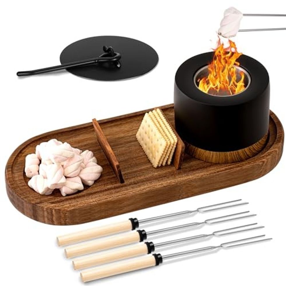 This s'mores kit is a great option to keep you entertained this winter season. It includes everything you need, such as a serving tray, roasting sticks, and a virtually smokeless flame, making it safe for indoor use.