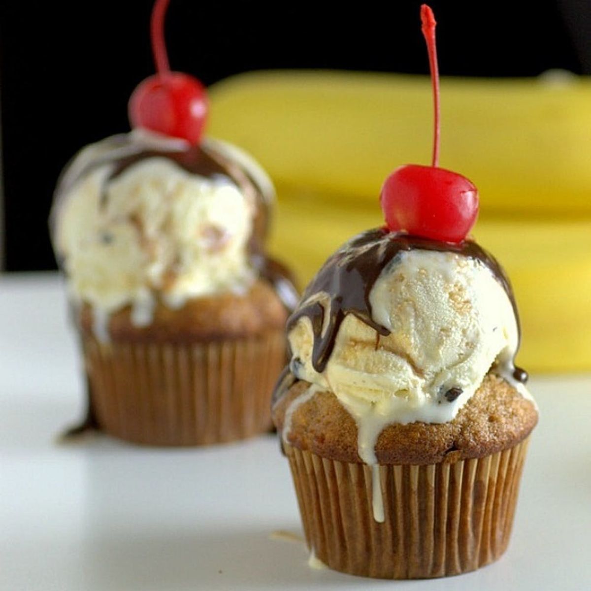 2. Banana Ice Cream Sundae Cupcakes: Forget about boring cupcakes or messy banana splits. This summery treat combines both in a completely creative way. You can even let older kiddos drizzle the chocolate on top or add cherries! (via Baking Bites)