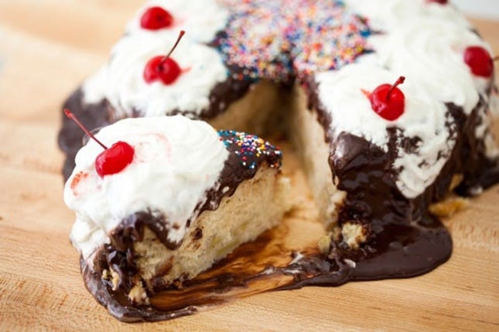 This banana split cake might be better than the ice cream version. Top it off with more old-school sundae toppings like caramel or strawberry sauce, shredded coconut, and chopped nuts to take this to the next level.