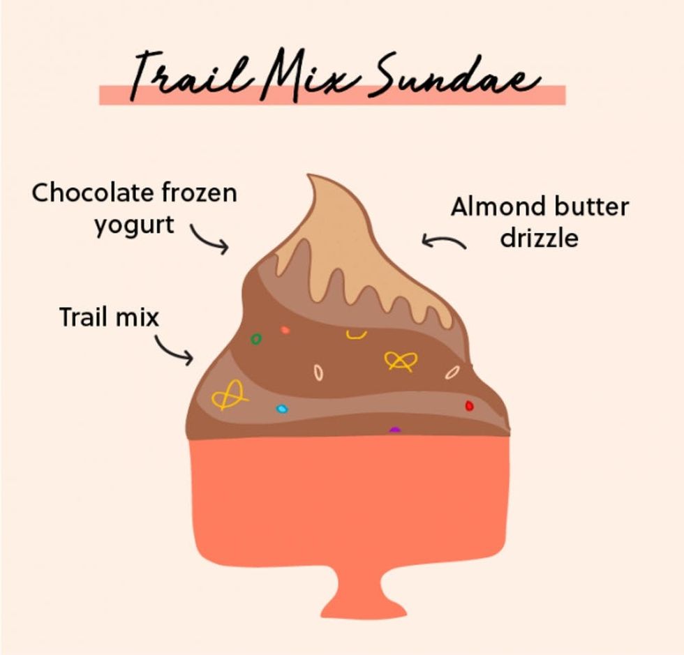 3. Trail Mix Sundaes: Tangy chocolate frozen yogurt gets an upgrade with trail mix and almond butter.