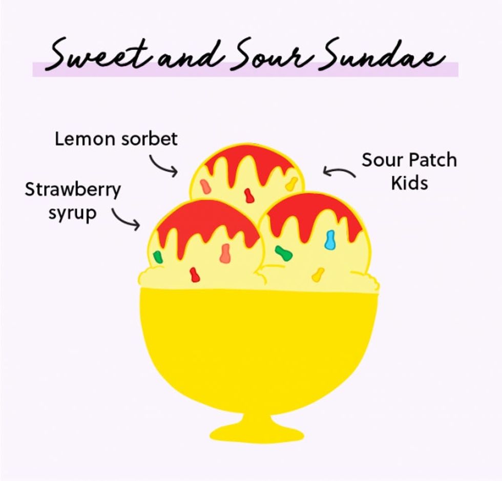 4. Sweet and Sour Sundaes: Add Sour Patch Kids and strawberry sauce to a few scoops of lemon sorbet (related: best ice cream maker).