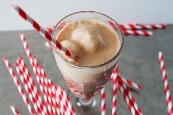 Place a few scoops of ice cream in a tall glass and top with sweet tea. Garnish with a striped straw.