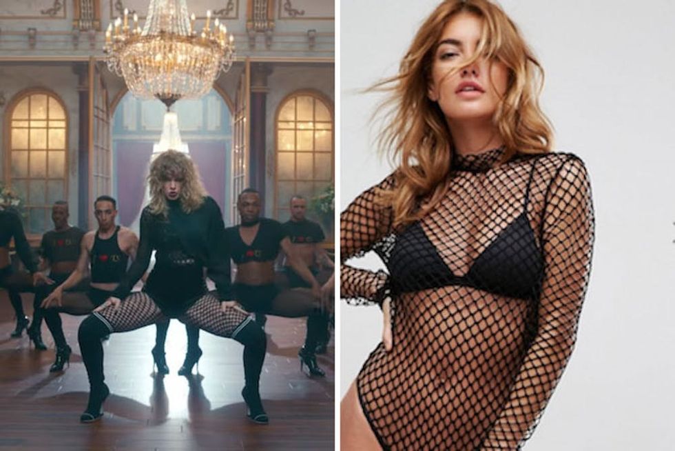 2. Taylor Swift: Taylor Swift’s “LWYMMD” video introduced us to a whole new Tay (you know, seeing how the old one is dead and all), and as edgy as her updated style is, it’s actually pretty easy to achieve! Start with an ASOS Long-Sleeve Mesh Bodysuit ($40), then add Rue 21 Velvet High-Waisted Panties ($13 with bra set), Luxury Divas Stripe Thigh High Socks ($12), and Forever 21 Diamond Fishnet Tights ($7) to get your own Reputation as a master of disguise. (Photo via TaylorSwiftEVO/YouTube)