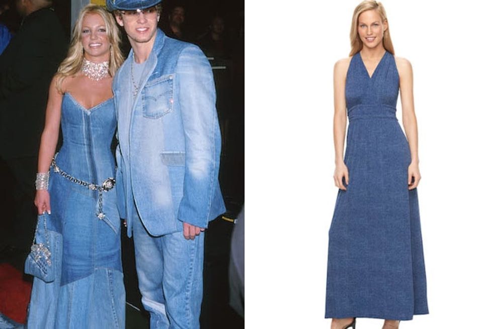 5. Britney Spears: No Britney Spears red carpet moment is more memorable than when she stepped out in an all denim maxi to match then-boyfriend Justin Timberlake’s Canadian tuxedo. While you’ll be hard-pressed to find an exact replica for her dress (unless you’re Katy Perry, that is), this Suite 7 Halter Maxi ($100) will get the idea across as long as you’ve got the right accessories. Might we suggest this Forever 21 O-Ring Belt ($10) and Pretty Little Thing Lylia Chunky Jewel Choker ($22)? (Photo via Jeffrey Mayer/Getty)