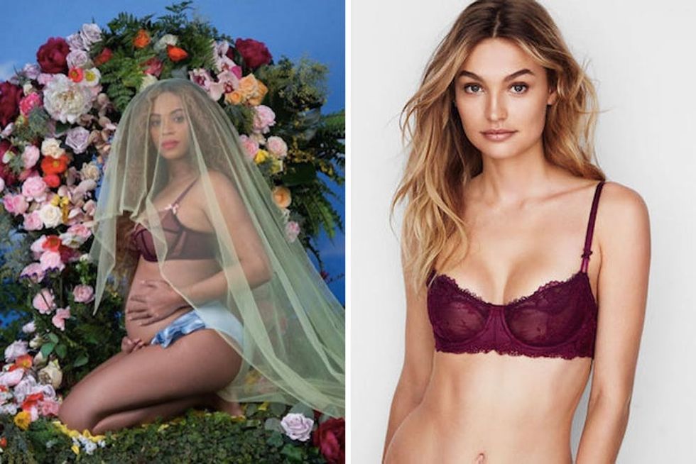7. Beyonce: Beyoncé more or less broke the internet with her epic (and fashionable!) pregnancy photoshoot earlier this year, daring to bare in a lace bra and a pair of satin panties beneath a green veil of fabric. If you’re feeling bold, this Wicked Unlined Uplift Bra ($35) in Kir Retro Romance lace paired with a pair of ASOS Luxe Contrast Bind Shorts ($43) should aid in transforming you into Bey. (Photo via @beyonce)
