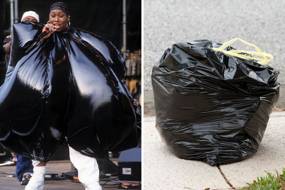 10. Missy Elliot: The rap mogul’s “The Rain (Supa Dupa Fly)” outfit is your best option in a jam — simply spring for a bag of Hefty (preferably Ultra Strong) ($11), and go to town! While it may take some creative cutting and/or wrappage, it’s at your disposal (pun intended), so why not use it? Bonus points if you add these Guess Decia High-Top Platform Sneakers ($85).