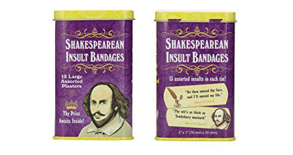 I am not sure why anyone would need these but here are Shakespearean insult bandages. As one reviewer puts it, "come for the Shakespearean insults - stay for the good bandages!" It seems like a lot of these reviewers are getting them for their professors.