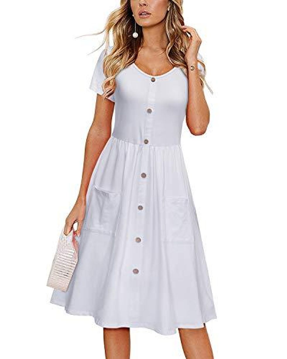 I love the decorative button trail this VOTEPRETTY Dress has, and when you combine it with the midi length and flowy fit, it makes the cutest summer dress. Plus, the two frontal pockets are not only convenient, but also add plenty of charm to the dress.