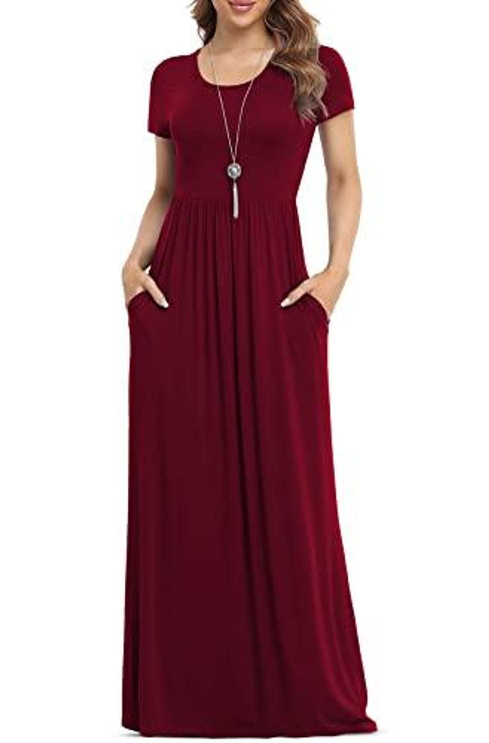 This VIISHOW Maxi Dress is super comfy, as the fabric is very soft, stretchy, and lightweight. It has a simple design that can be easily dressed up or down with jewelry and shoes. I personally recommend the gorgeous Wine Red color!