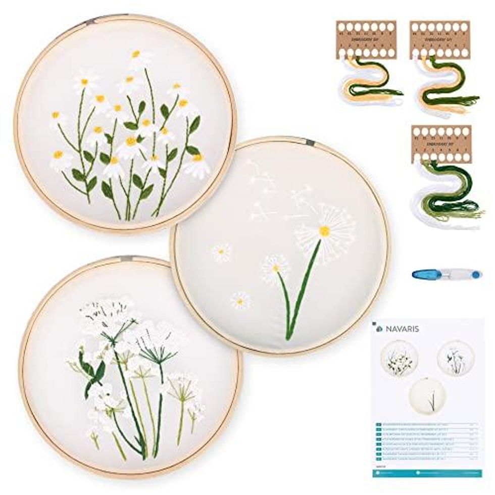 This flower embroidery kit for beginners is becoming super popular because of its transparent background. Moving away from the traditional white backdrop that we know so well, it's something new and fresh to create a unique crafting project. There are three full kits included with everything that you need to complete an individual design. You can display the three together, or individually around the home.