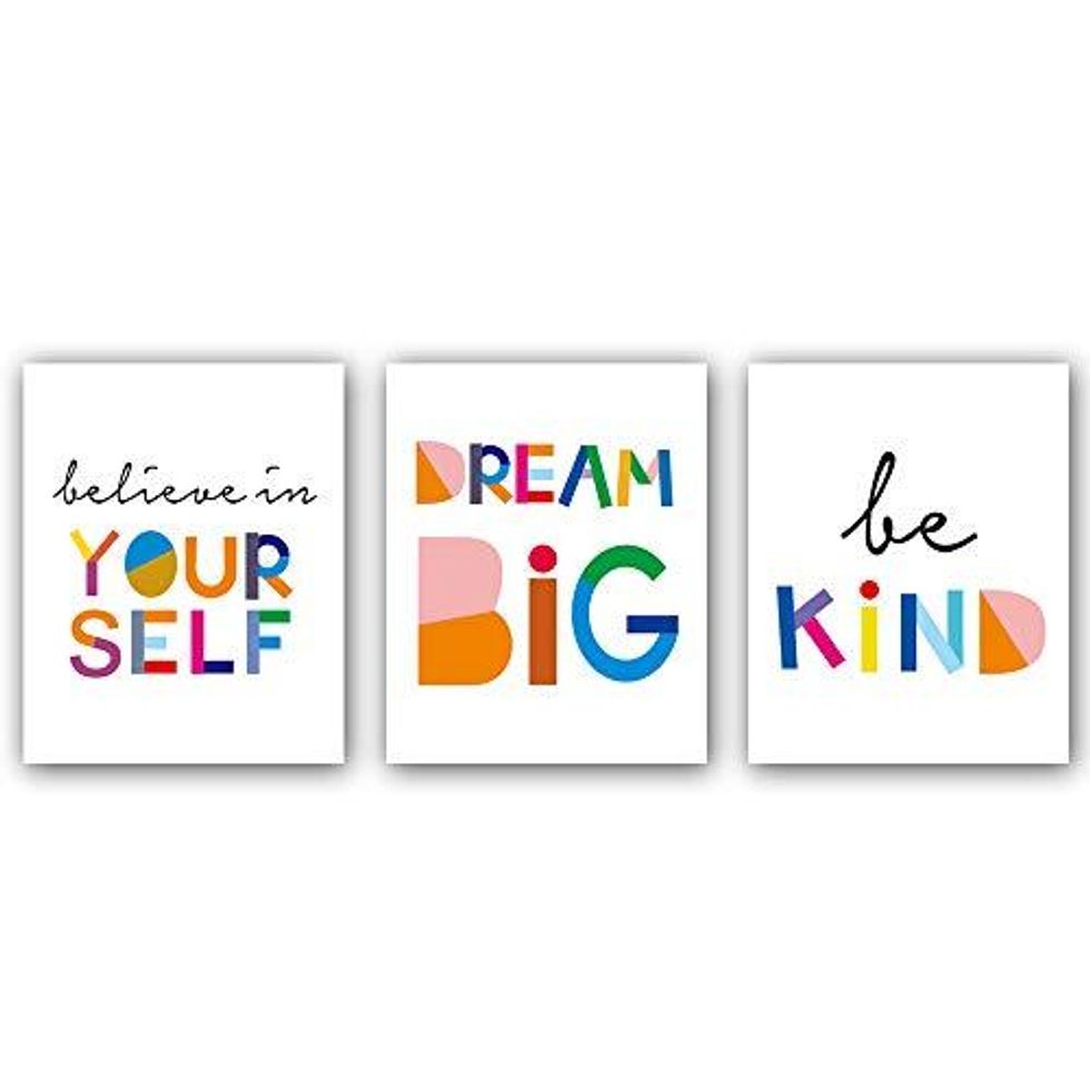 Surrounding yourself with positivity will help you navigate difficult days, which is why we absolutely adore these sweet watercolor prints. Simple messaging such as 'Be Kind' and 'Dream Big' is effective without being too heavy for children. These inspirational prints are a really easy way to brighten up a child's bedroom. They don't come with frames so you can pick what works best for your decor.