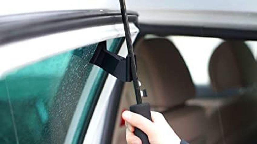 There's nothing worse than trying to get into your car while holding your umbrella. Luckily, with this Umbrella Holder that attaches to your car, you can keep yourself and your car dry all at the same time. This accessory can accommodate a variety of different sizes, making it compatible
