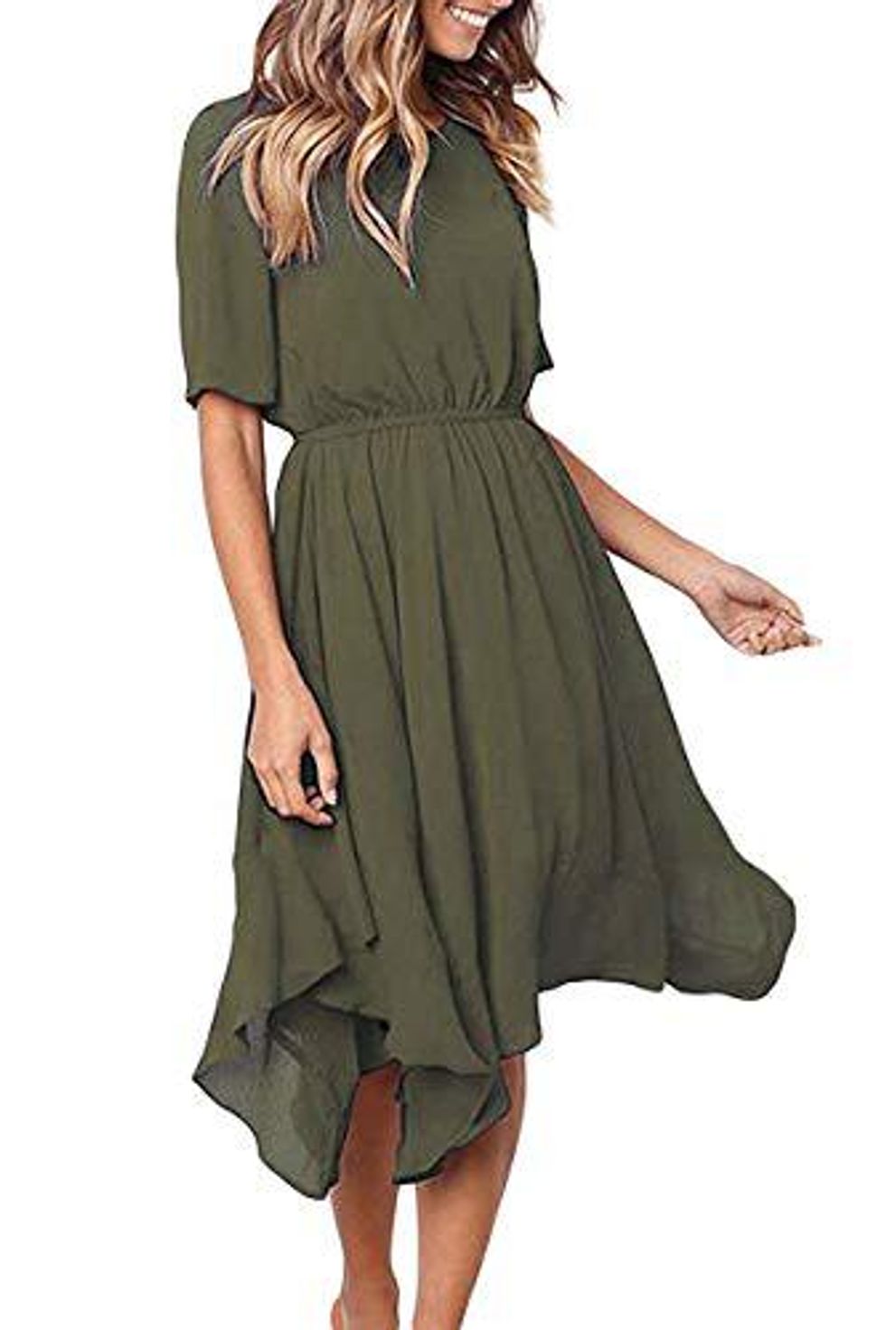 See it on AmazonAngashion Midi Dress With Charming Frontal Pockets