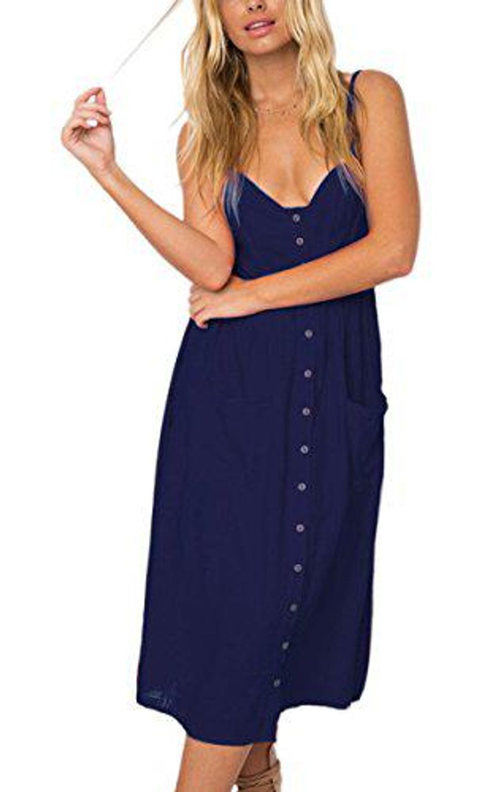 The Angashion Midi Dress has a sexy V-neck and backless design that will not only look great, but will also keep you feeling refreshed all day long. This navy blue dress has functional buttons, and the flowy length will go great with a pair of sandals. “It fits great and the stretch makes it comfortable. It doesn't require ironing which is a bonus,” wrote a reviewer.