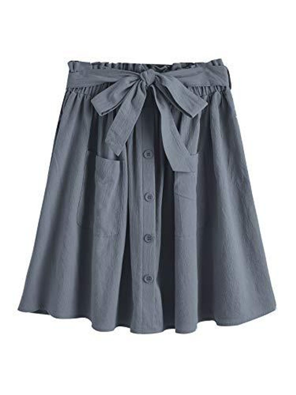If you love the paper skirt look, you’ll want this SheIn Skirt, which has a short length, a tie waist, button décor and frontal pockets. The dark grey one is definitely my fave! One happy reviewer wrote: This is such a cute and effortlessly stylish skirt. Easy to throw on with a tshirt and flats for errands or can be dressed up with a silky camisole and wedge sandals.”