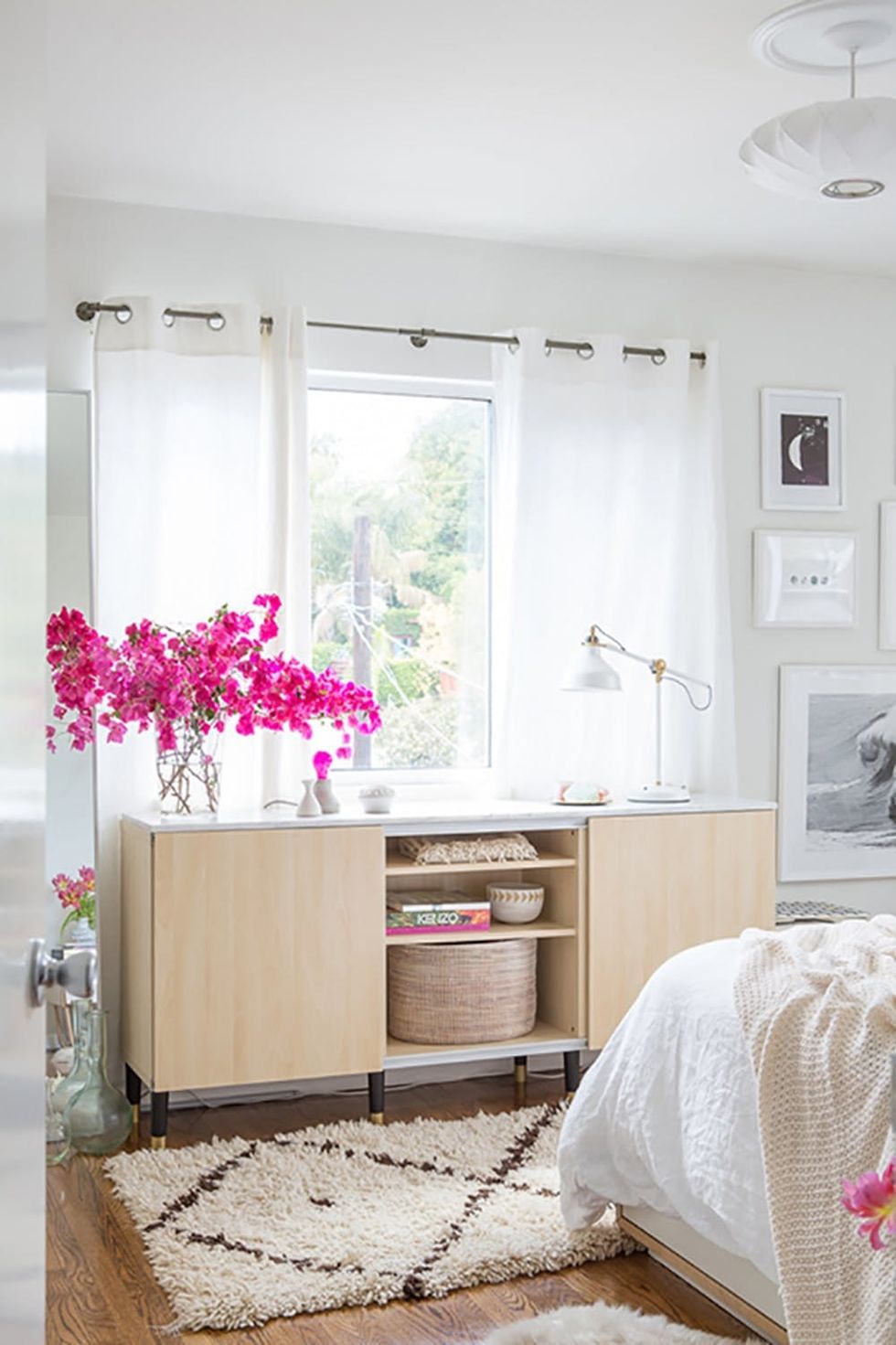 11. IKEA Cabinet Dresser Hack: Sure, IKEA sells dressers, but by combining cabinets with custom legs and a marble top, you can design a piece that fits your exact needs without breaking the bank. (via DesignLovefest)