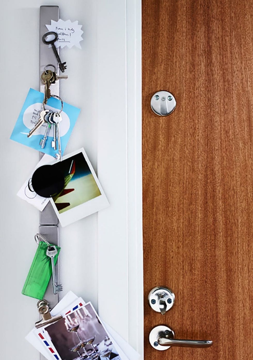 14. IKEA FINTORP Entryway Organizer: You really don't need to use most pieces for their intended purpose. This knife rack doubles as a slim-profile entryway system with the help of magnets. Get yourself some easy organization with this project. (via IKEA)
