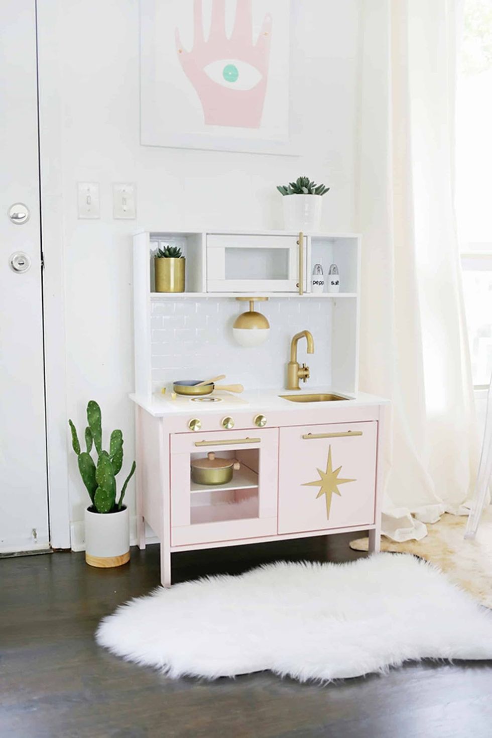 24. Mid-Century Modern IKEA Play Kitchen Hack: Kids need stylishly upgraded furniture finds too. A little paint goes a long way toward spiffing up this toy. (via A Beautiful Mess)