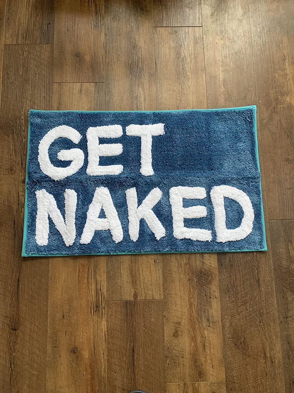 Bring a little tongue and cheek to the bathroom with this Get Naked bath mat. It's an adorable little addition that does the job and brings a little fun to the bathroom at the same time. And I love the bright blue color!