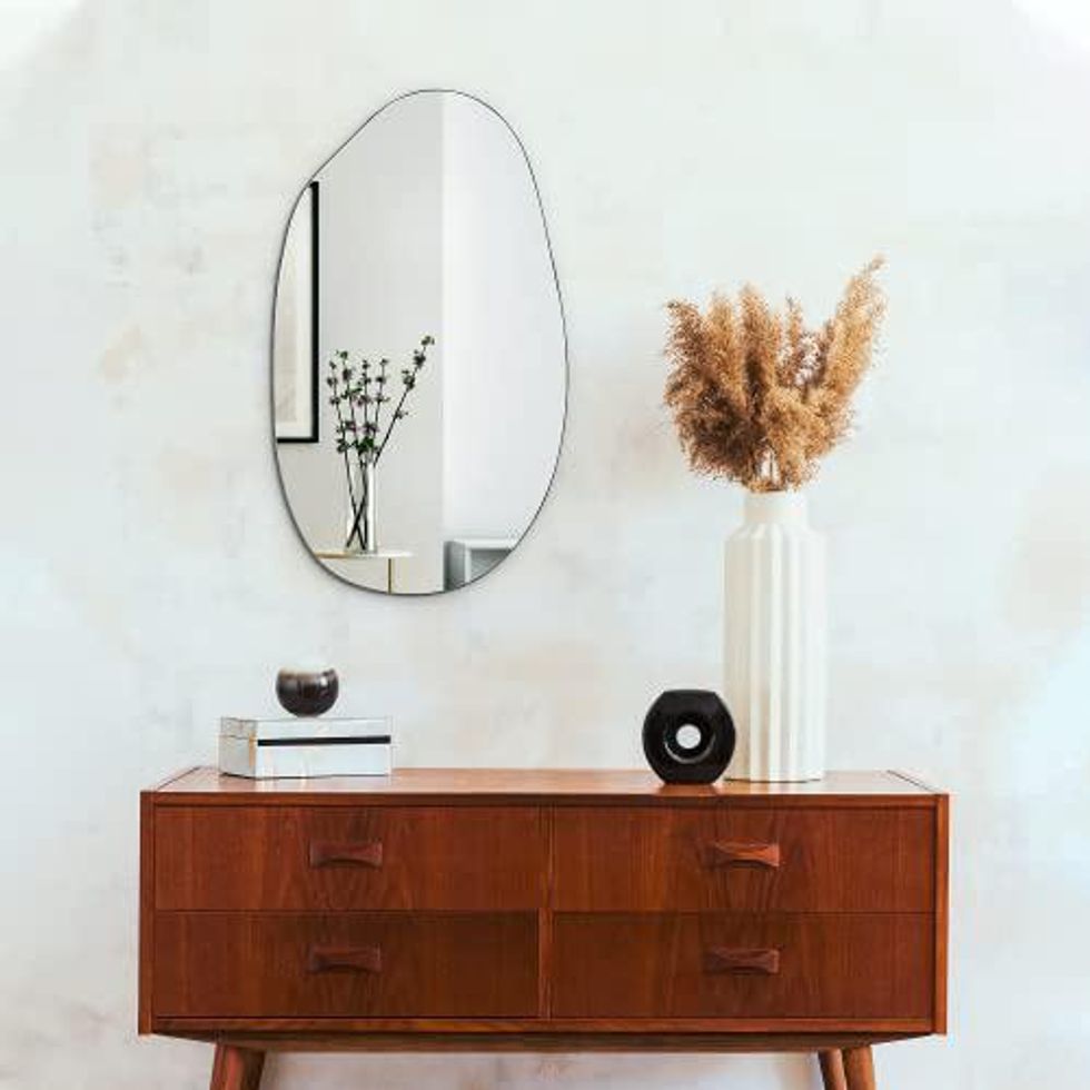 People are moving away from standard, symmetrical design items. This asymmetrical mirror is a fun way to play around with abstract edges. This mirror would look great in an entryway or among other wall art.